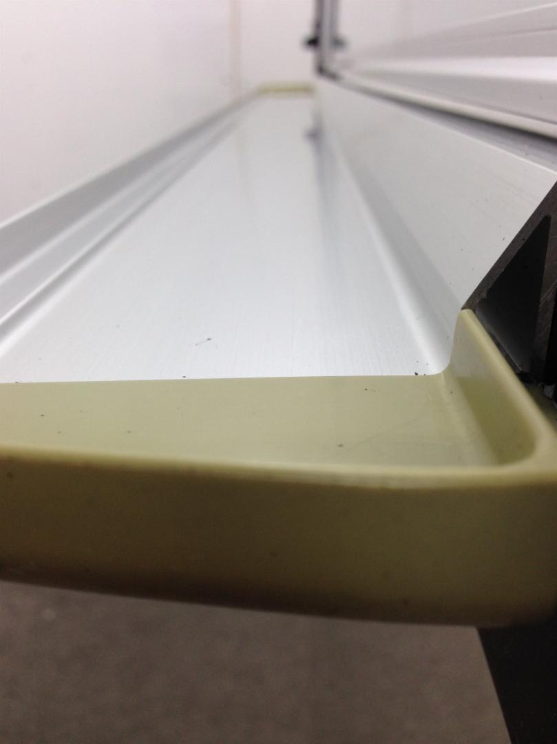 - かなり強い濃い黄ばみ・変色が商品全体にある。(例、板面、受け、サイド部分、脚部にある。)