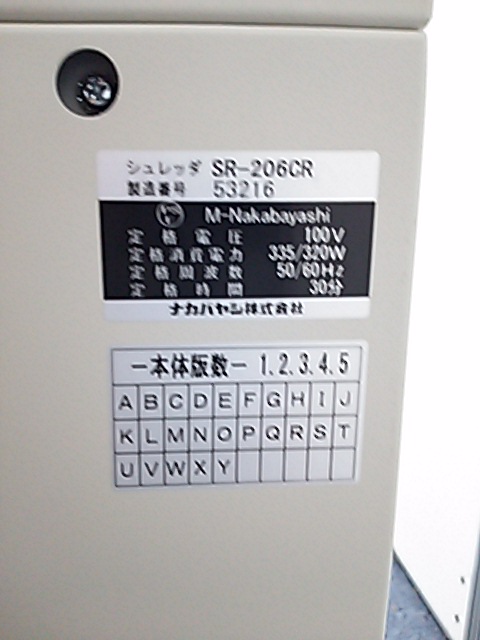 【中古】 SR206CR ナカバヤシ シュレッダー 170305