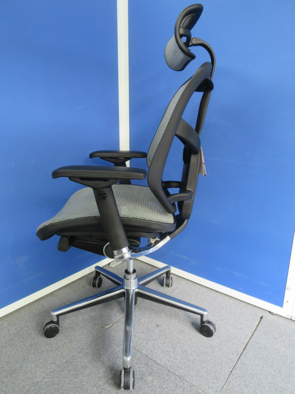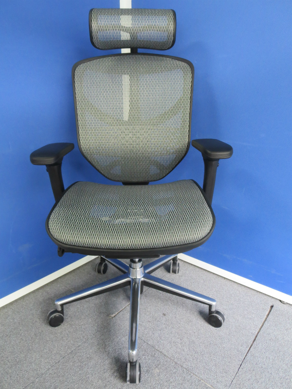 【デスクワークが捗ります!】■エンジョイチェア ヘッドレスト付 ■グレー 可動肘付【Comfort Seating】- 川崎店