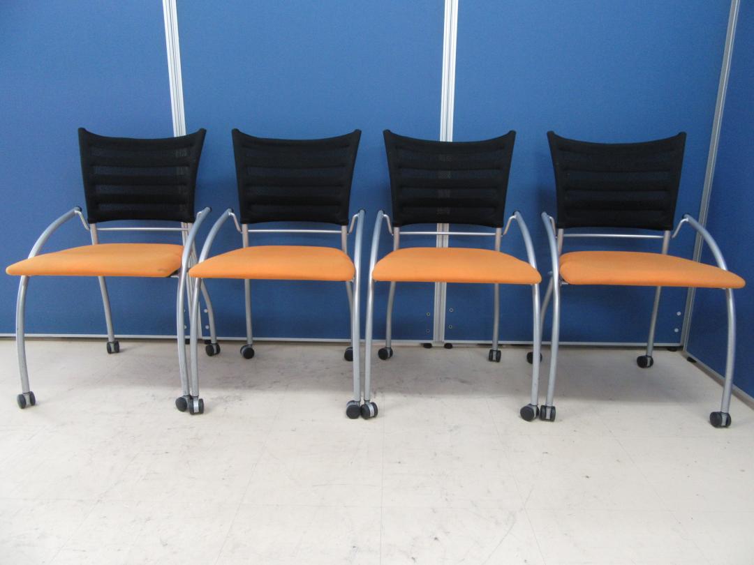 [4脚セット!!]イトーキ(ITOKI) ネスティングチェア■メッシュ生地で蒸れにくく、ポップなオレンジが印象的!!会議にちょっとしたミーティングに使い勝手が良いチェアです!!- 足立・葛飾店