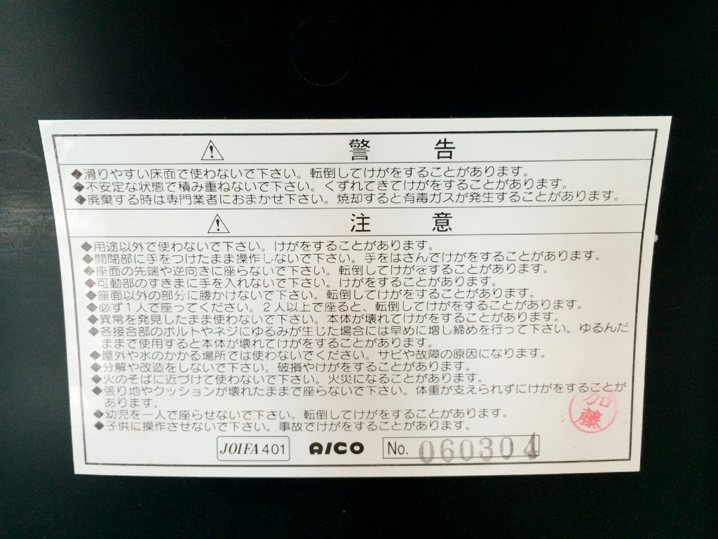 - 一部不具合ありそのチェアの本来の効用を果たすための機能以外の数か所が使用不可の状態にある。(例:背もたれロック不良と奥座調整等の内数カ所)