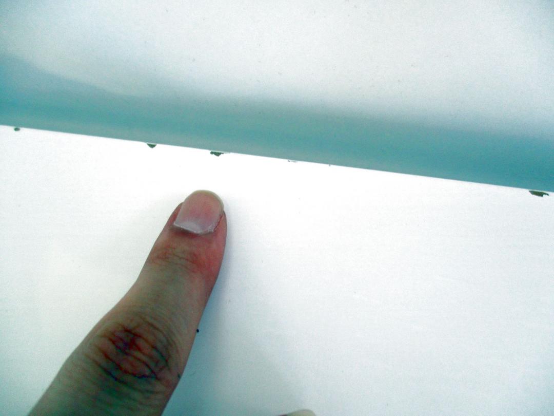- あり黄ばみ・変色が広い範囲にうっすらある、または濃い黄ばみ・変色が一部ある。(例、天板、幕板、棚板、サイド部分、脚部等にある。)