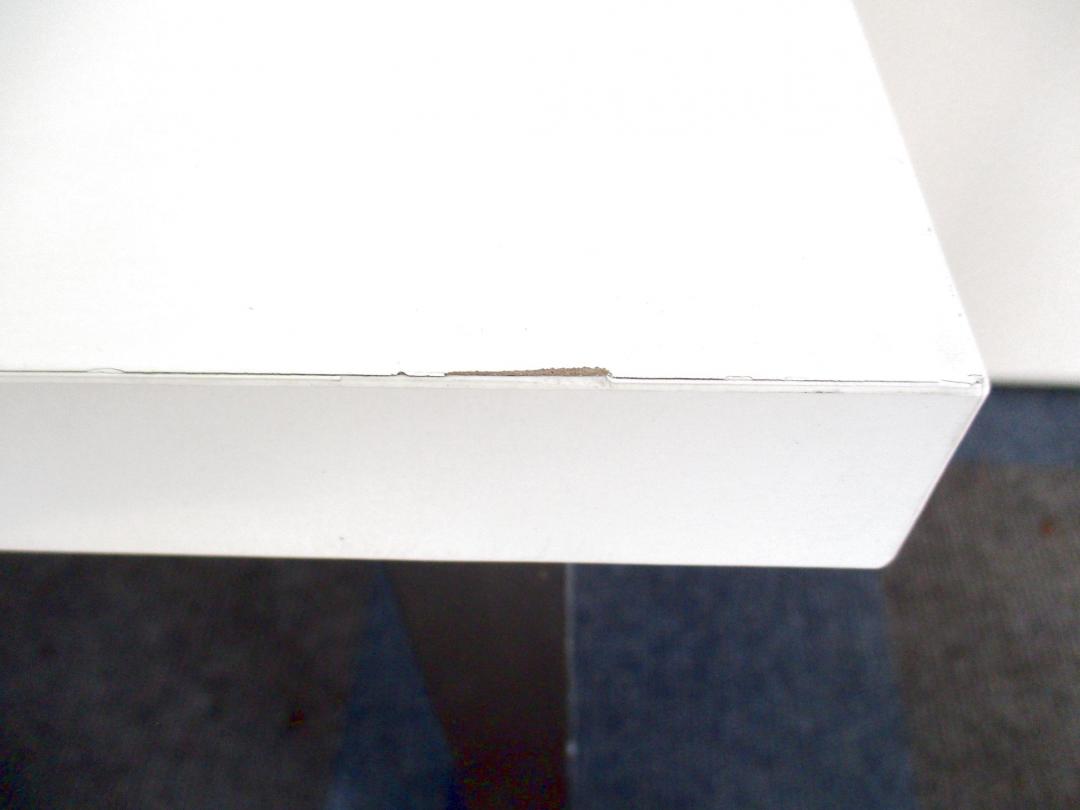 - かなり強い濃い黄ばみ・変色が商品全体にある。(例、天板、幕板、棚板、サイド部分、脚部等にある。)
