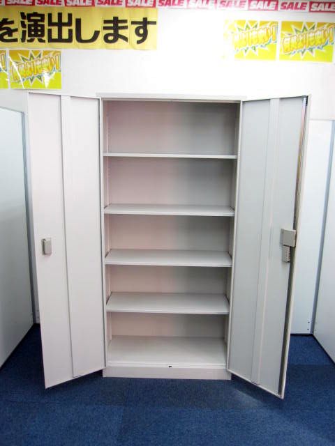 このサイズの両開き書庫は非常に人気が根強く、梁下等の高さが限られる部分でも設置可能です。