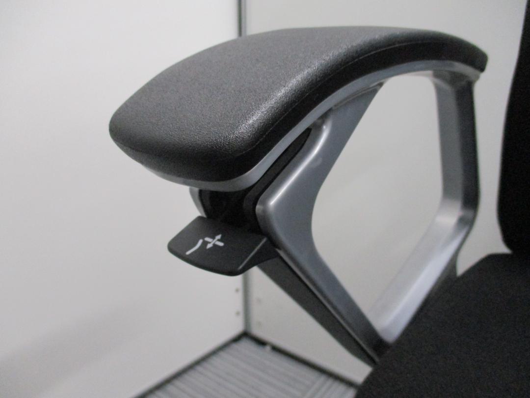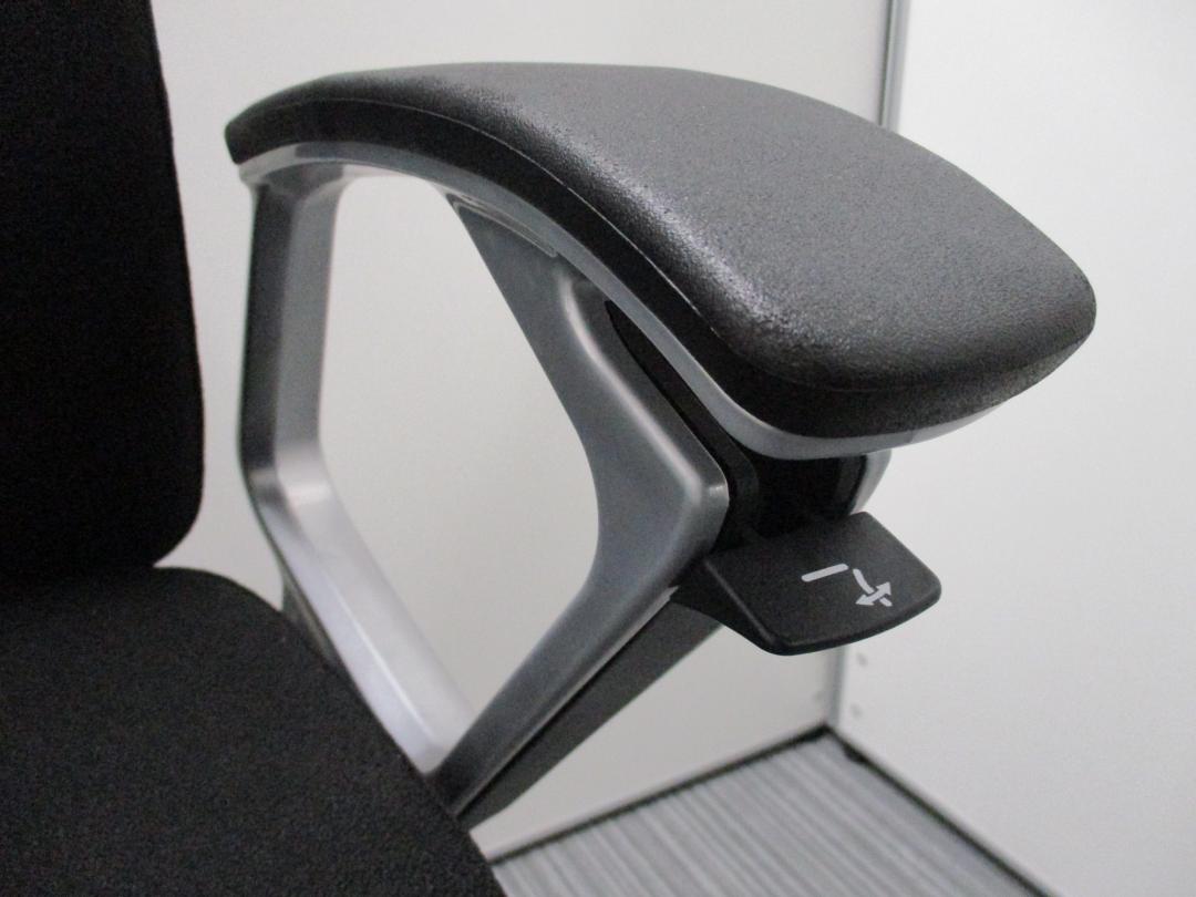 ※ひじ掛け部分に使用感ありのため、特価!【オカムラの最上級モデル!高級感と機能性を融合させたチェア!】■ハイバック 肘付き 背・座クロス張地(スエード調) 固定肘 ※サイド剥がれ有り ランバーサポート付き ブラック/オカムラ/デューク