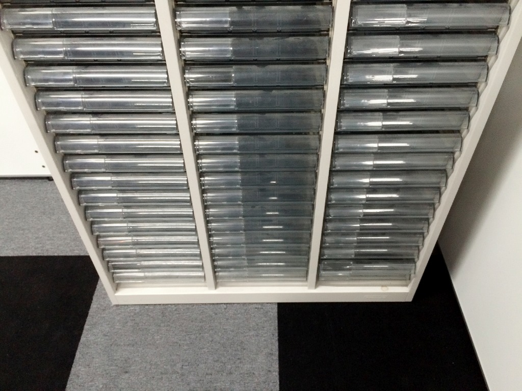 - 壊れている引出の開閉不可、施錠不可、棚板無しといったその書庫の本来の効用を果たすための機能に不具合がある(例、扉、引出の開閉が行えない。)