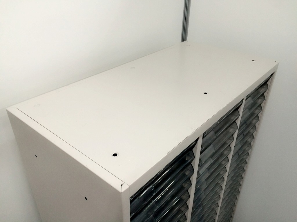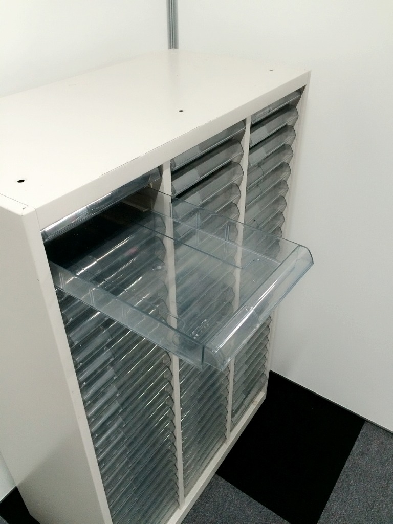 - 多数不具合あり引出の開閉不可、施錠不可、棚板無しといったその書庫の本来の効用を果たすための機能以外の多数が使用不可(例、扉、引出の開閉がしづらいなどがある。 )