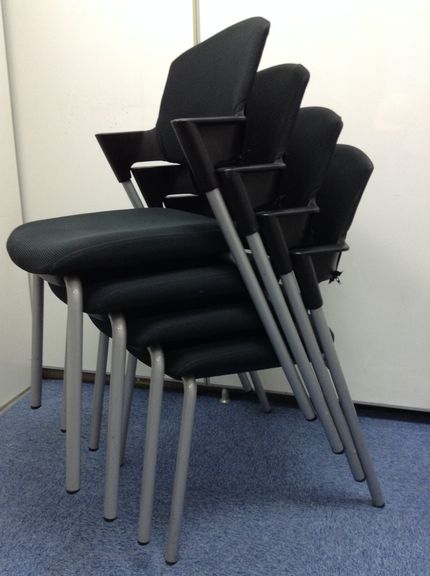 【セット商品(チェア×4脚)】【シンプルスマートなスタッキングチェア!分厚いクッションで長時間でも快適な座り心地!】/オススメ(おすすめ) /人気商品【弊社使用欄:A01037619】■スタッキングチェア 肘付ミーティングチェア ■固定肘 ■キャスター付 ■ブラック ■背面樹脂/コクヨ(KOKUYO/プロッティ