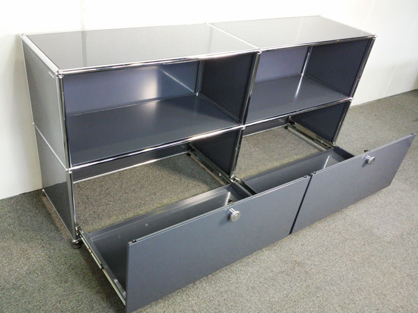 【期間限定価格】【組換え自由のシステムキャビネットです。】USMハラー 2連2段キャビネット アントラサイト【Dlot】- デザイナーズ家具センター