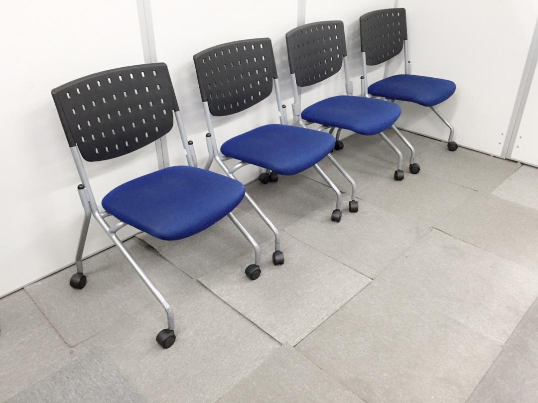 ブラック&ブルーのキャスター付きネスティングチェア入荷!横に収納ができるので、使わない時が非常に便利!- 在庫数