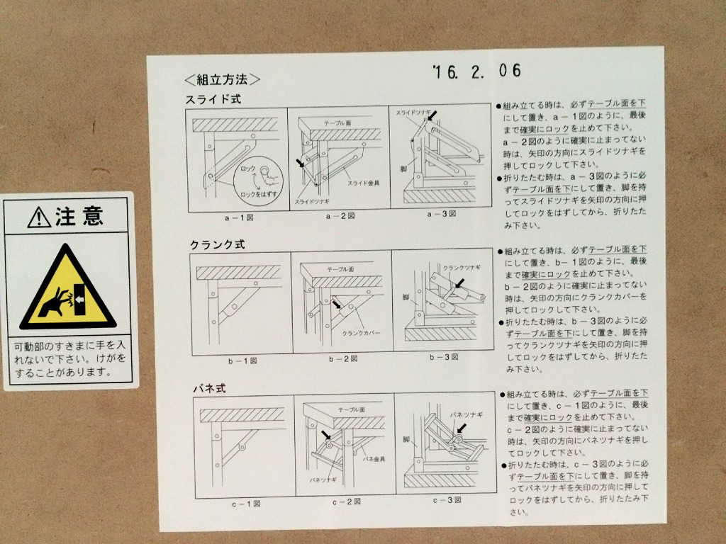 脚を立たせる時にしっかり横に伸ばさないとぐらついて倒れる恐れがあります。