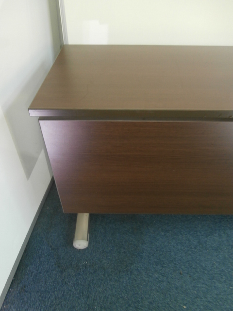 - かなり強い濃い黄ばみ・変色が商品全体にある。(例、天板、幕板、棚板、サイド部分、脚部等にある。)