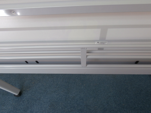 - 一部不具合あり天板歪み、アジャスター無し、キャスター使用不可ようなそのテーブルの本来の効用を果たすための機能以外の一部が使用不可な状態。(例、キャスターロッ ク機能使用不可、棚板無し等がある。)