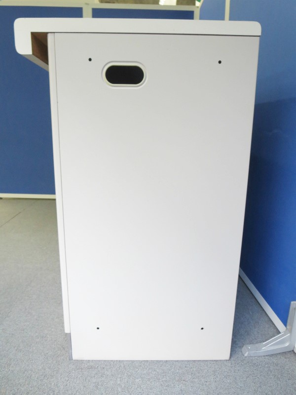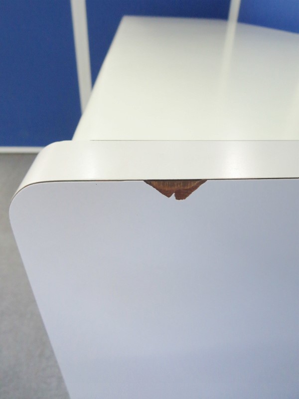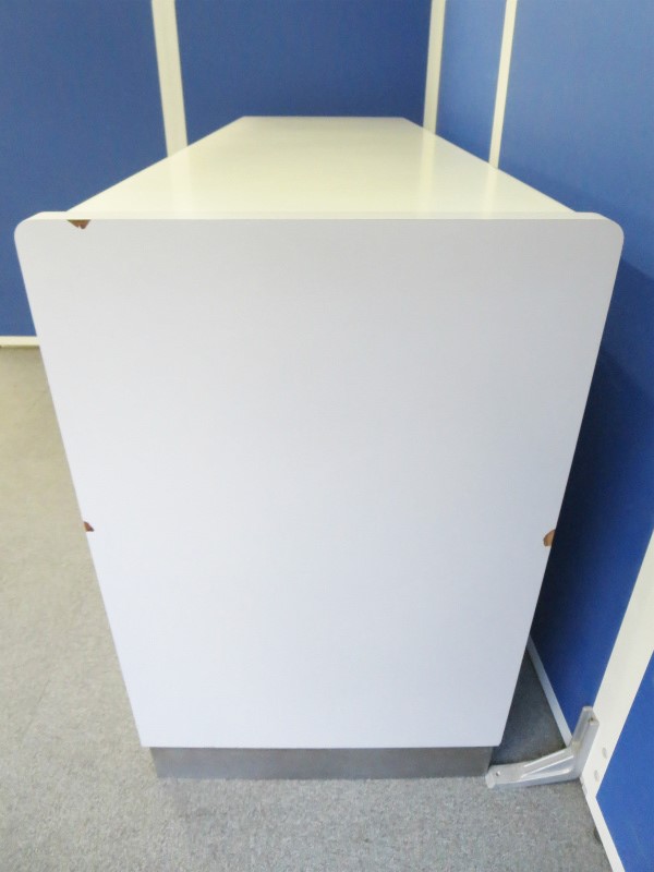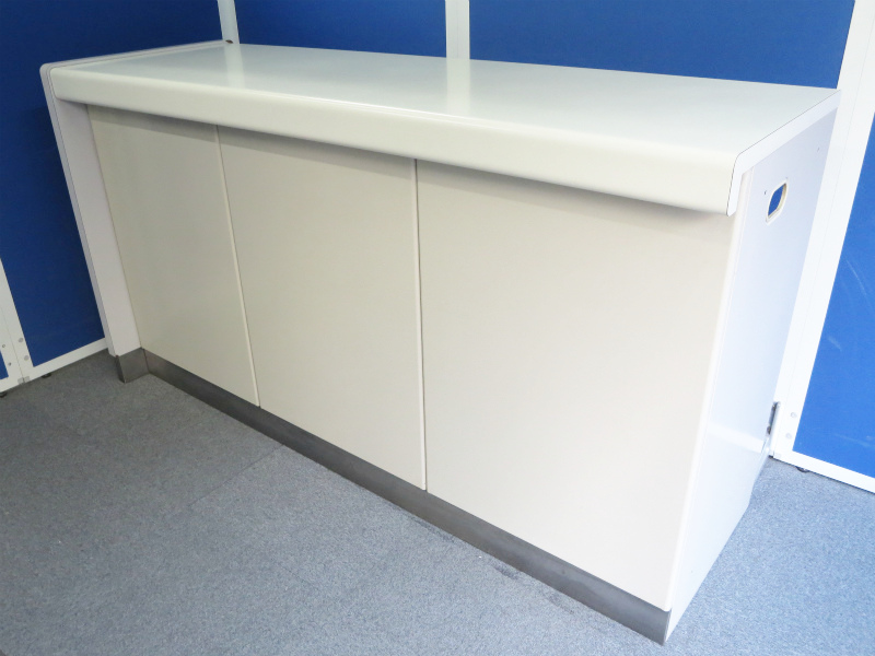- 一部不具合あり天板歪み、引出開閉不可、アジャスター無し、施錠不可のようにそのカウンターの本来の効用を果たすための機能以外の一部が使用不可な状態。(例、引出が 開閉しづらい等がある。)