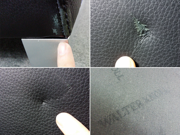 - 目立つ箇所複数ありソファの場合、深い破け、ホツレ、へたり、しわ等が多数ある。(例、背もたれ、肘かけ、座面等にある。)センターテーブルの場合、深い傷・凹みが商>品全体にある。(例、天板、脚にある。)