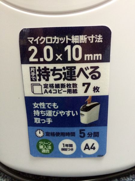・最大細断枚数:7枚(A4コピー用紙 50/60Hz)