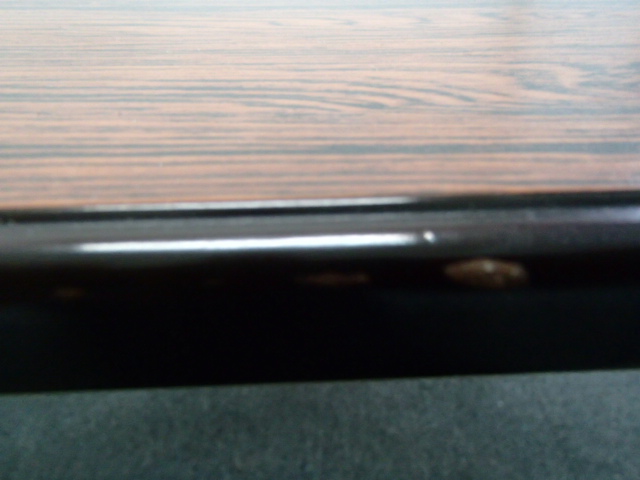 - かなり強い濃い黄ばみ・変色が商品全体にある。(例、天板、幕板、棚板、サイド部分、脚部等にある。)