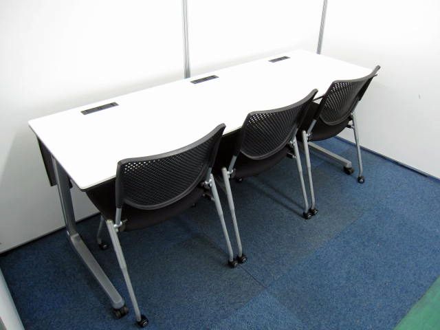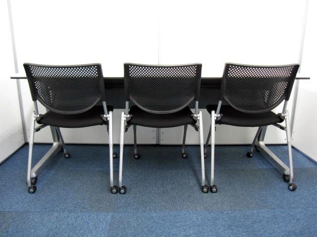 オカムラの高級スタックテーブルと人気のネスティングタイプチェア×3脚のセット。
