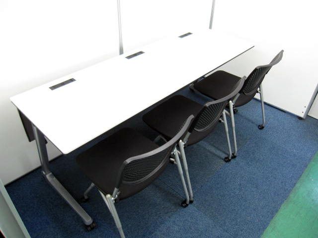 チェアはデスクの上や中に入れて保管しております。もちろん試座も可能ですので、お気軽にお申し付けください!