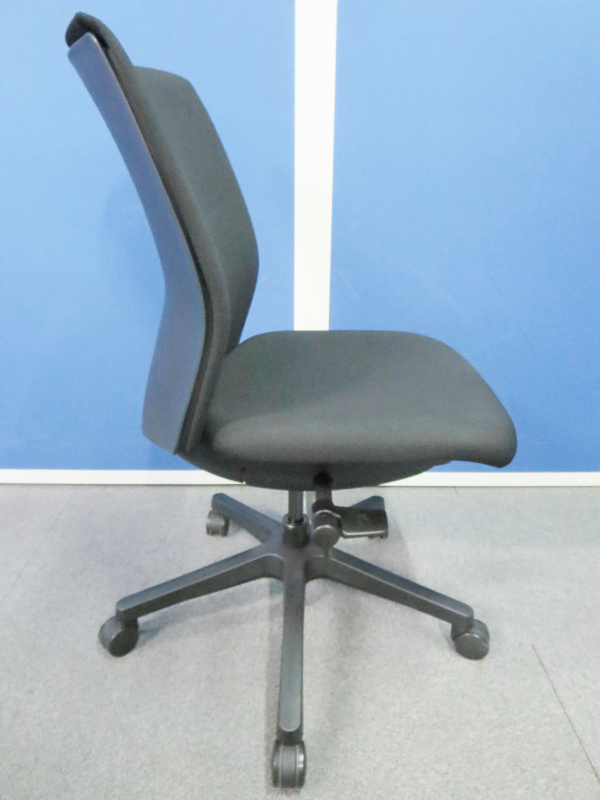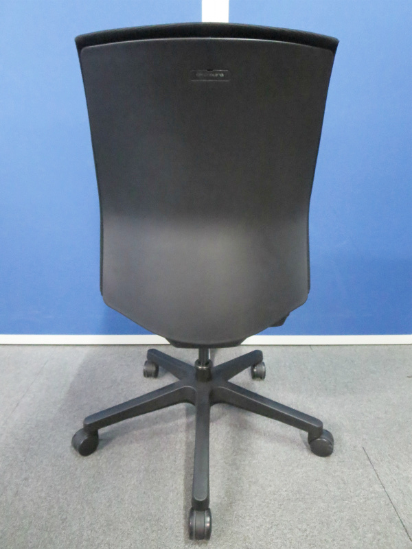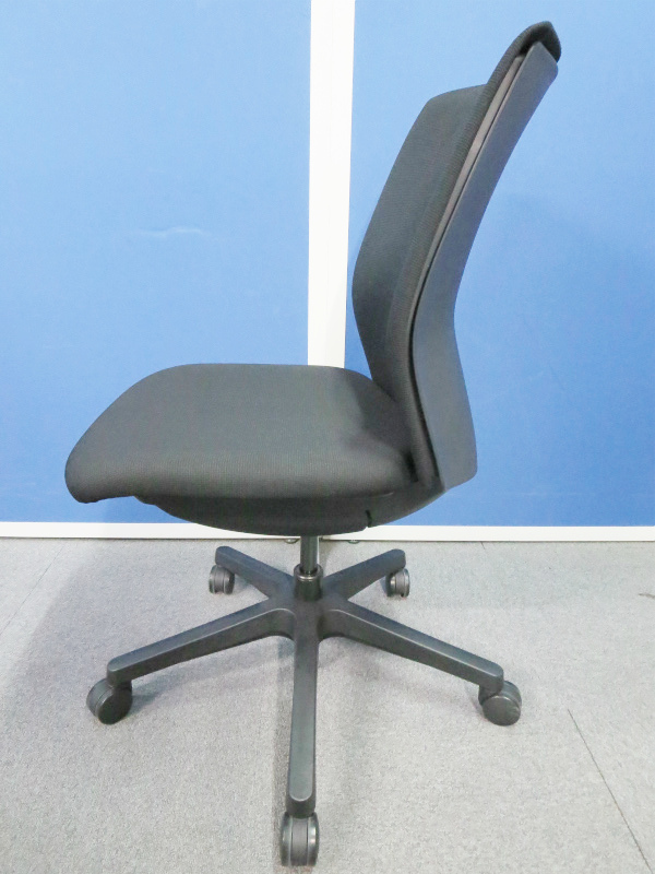 【美品!人気のブラックカラーの肘なしOAチェア!】■オカムラ製の現行カタログ商品!●背中を包みこむような座り心地!- 川崎店