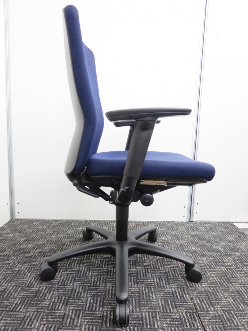 【長年愛されるロングセラー商品!厚めのクッションで疲れにくい!】■オカムラ(okamura)製 カロッツァチェア 肘付 ハイバック ■サークル肘 ■ブルー×グレーシェル