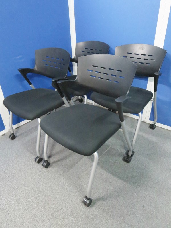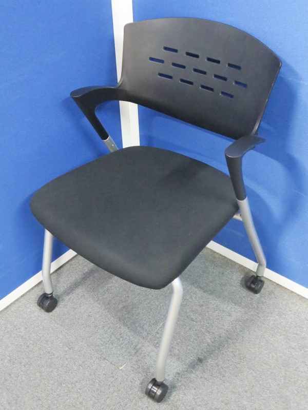 【オシャレデザイン!縦に重ねられるスタッキングチェア!】■キャスター付き!●状態良好!!- 川崎店