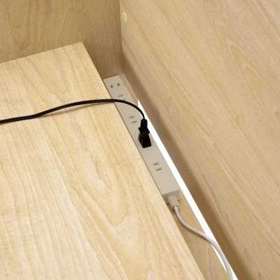 奥に電源コードなどを落とし込める溝有り