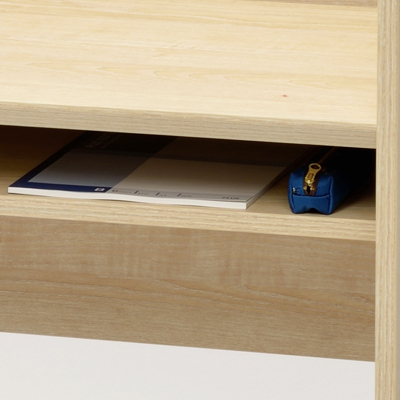 手前には筆記用具などを入れる棚板付です。