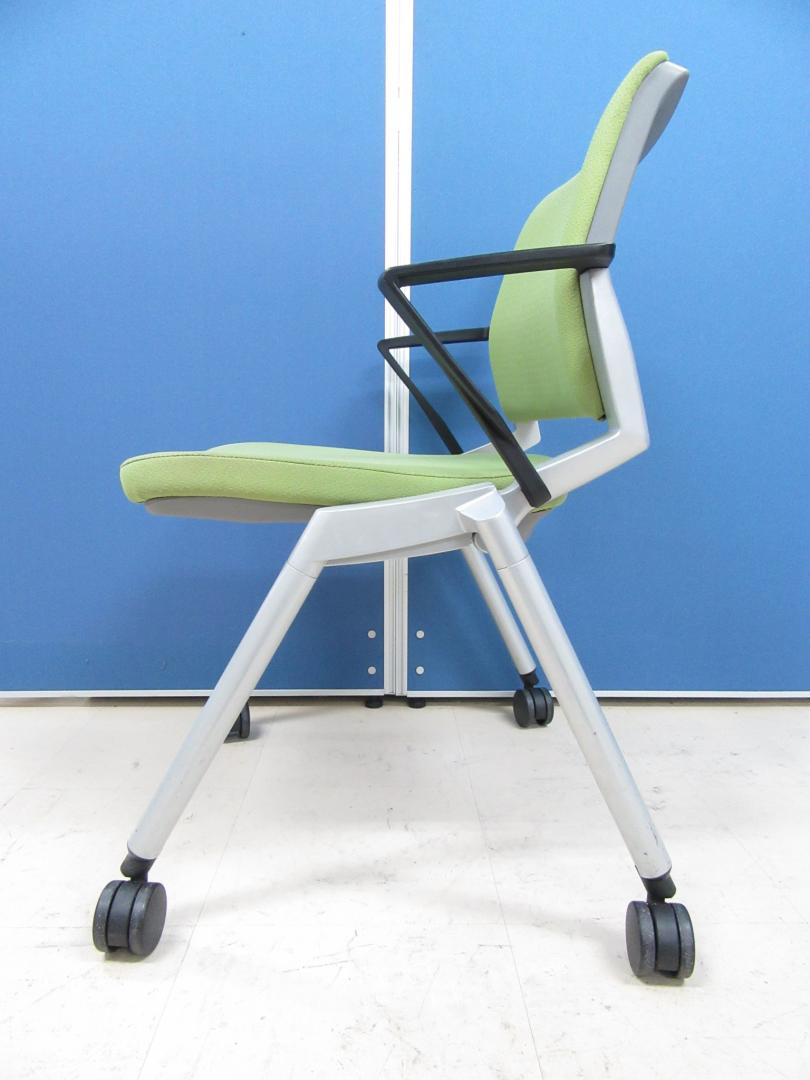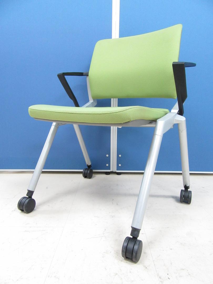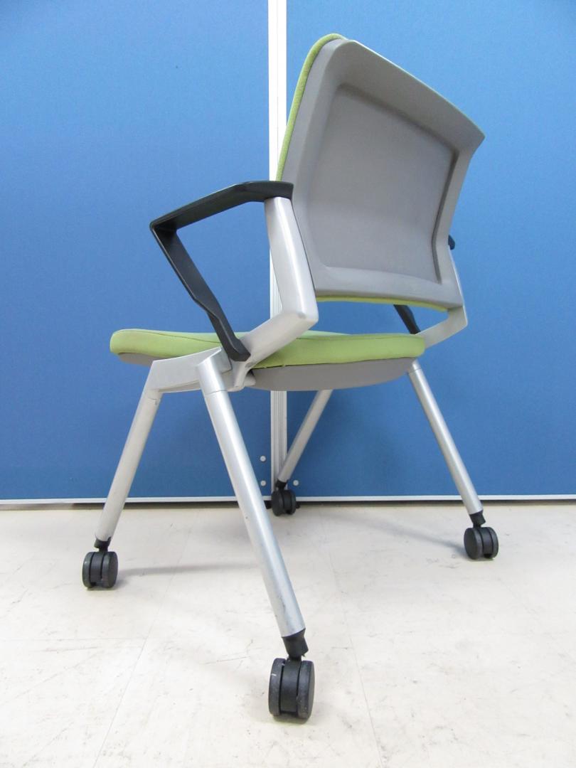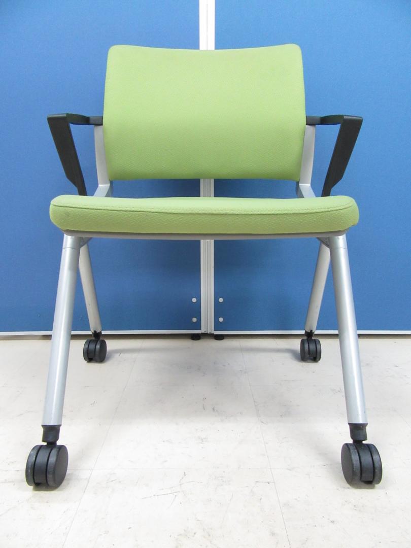 [お得な4脚セット!!]ネスティングチェア POPなライトグリーン!!キャスター付き・肘付きでとても使いやすいです!![足立・葛飾店おすすめ!!]- 足立・葛飾店