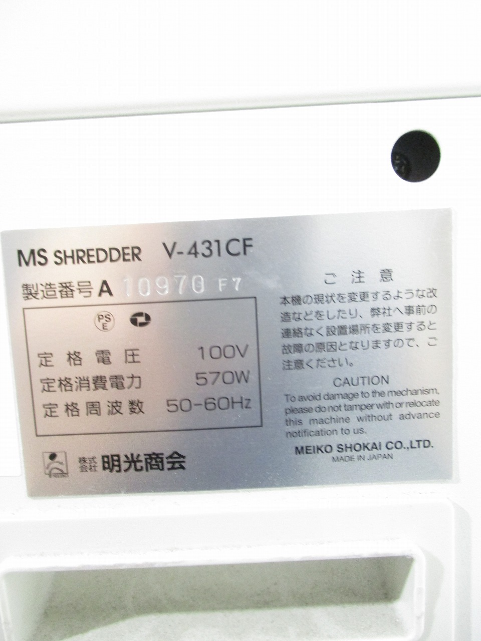 【中古】 MS-V431 明光商会 シュレッダー 172255