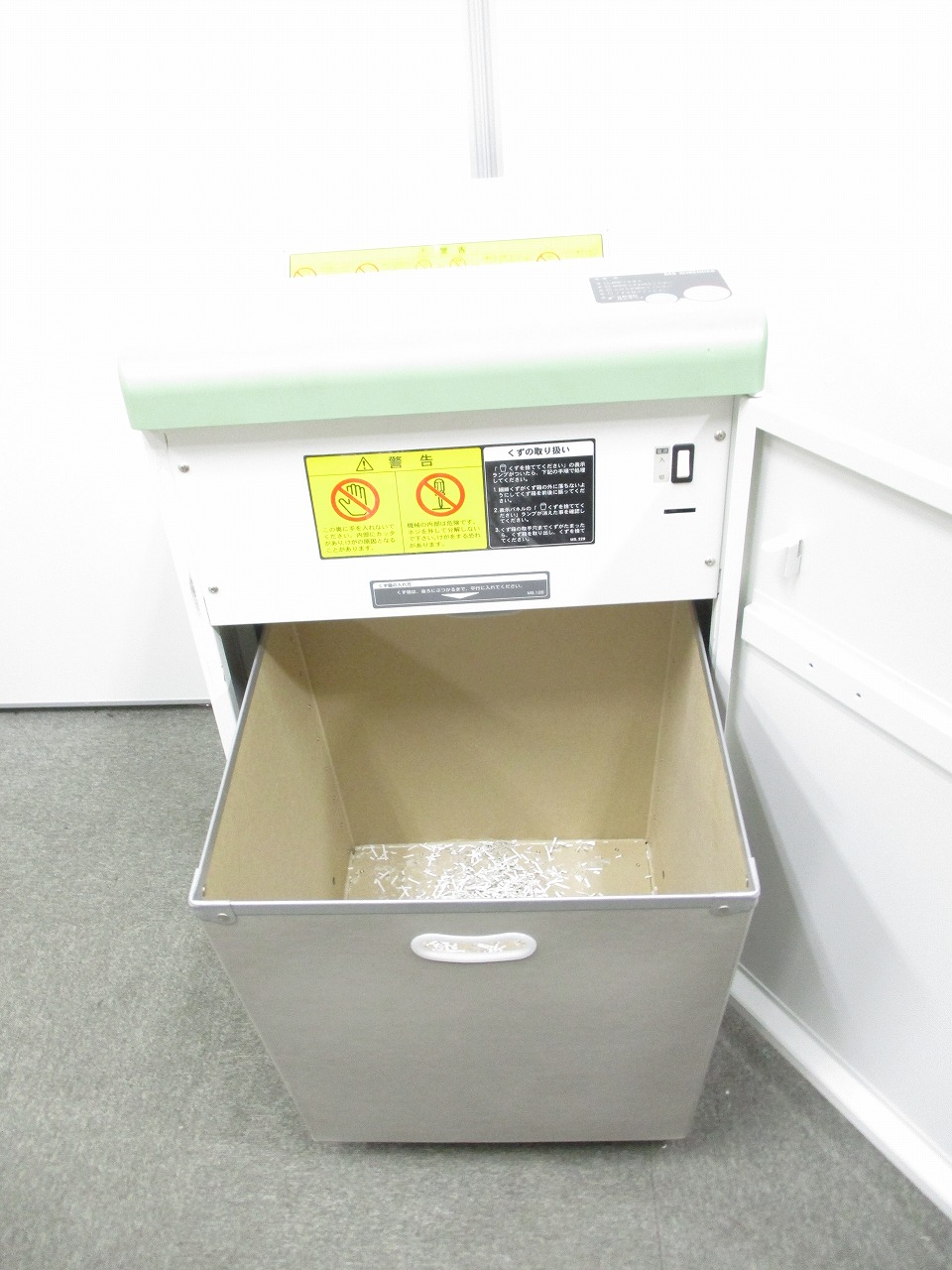 【ポップなグリーンラインが特徴】明光商会製の業務用シュレッダー!人気品薄商品!状態について