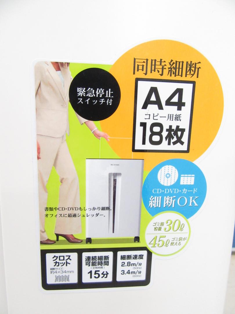 アイリスオーヤマ製のシュレッダー(SH18N)が入荷致しました!