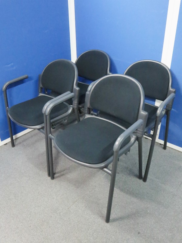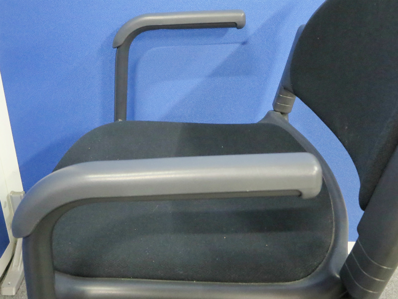 【リラックスできる肘付タイプ!】■スタッキングチェア ブラック ■プラス製(PLUS)- 川崎店