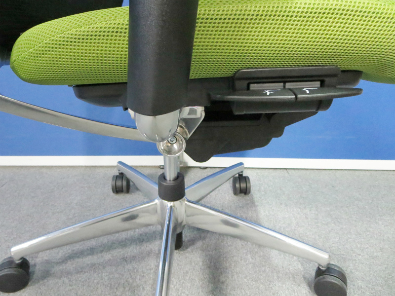 - 座る人の体格に合わせて、シート奥行きは前後54mm、高さ100mmの調整が可能です。また、調整レバーを座面シートの側面に設けることで、座ったままの姿勢で操作することができます。