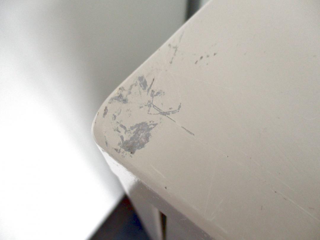 - かなり強い黄ばみ・変色が商品全体にある。(例、天板、正面、背部、サイド部分にある。)