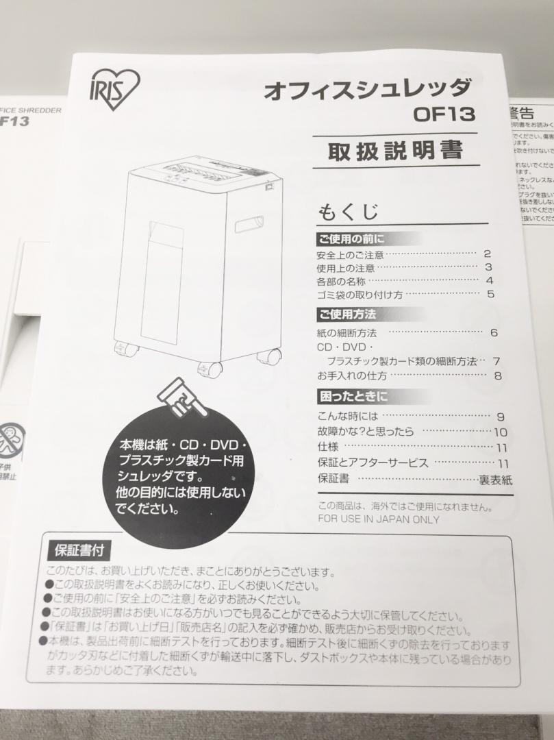 【新品】 OF13_ アイリスオーヤマ シュレッダー 172440