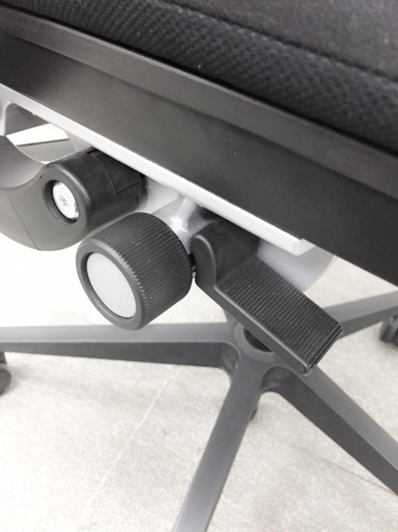 快適な座り心地に不可欠な調節機能である、上下昇降、座面の奥行き調整、リクライニングなどを備えており、操作もわかりやすく好評です。 特に、座面の奥行きは、座面下の左右に通った細いバーで調整でき、座ったままで軽やかに滑るように調整が可能です。 価格面では、新品では高めですが、中古は流通も多く、定価の3割前後の価格で高級チェアの座り心地を手に入れることができます!