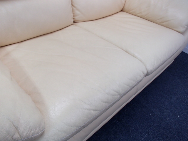 - あり黄ばみ・変色が広い範囲にうっすらある、または濃い黄ばみ・変色が一部ある。(例:三人用ソファ、二人用ソファ、一人用ソファの場合、背もたれ、肘かけ、座面等、 センターテーブルの場合、天板、脚にある。)