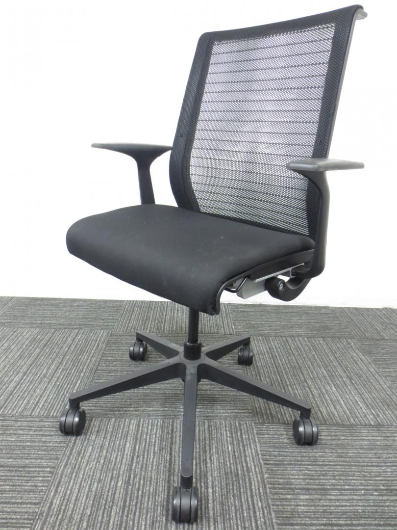 ■スチールケース(Steelcase)製 ■シンク(THINK)チェア ■ブラック(black) ■肘付き/可動肘 ■ハイバック ■背面メッシュ ■オススメ/人気/定番商品【弊社使用欄:A01046268】【KN】