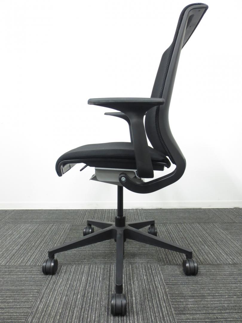 快適な座り心地に不可欠な調節機能である、上下昇降、座面の奥行き調整、リクライニングなどを備えており、操作もわかりやすく好評です。 特に、座面の奥行きは、座面下の左右に通った細いバーで調整でき、座ったままで軽やかに滑るように調整が可能です。 価格面では、新品では高めですが、中古は流通も多く、定価の3割前後の価格で高級チェアの座り心地を手に入れることができます!