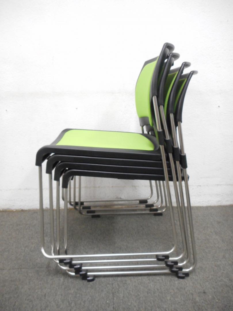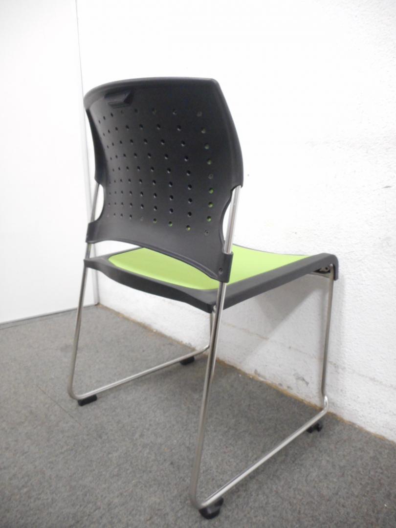 【軽くて丈夫なコクヨ製のスタッキングチェア】緑と黒のカラーリングが映える【4脚セットもありますよ】■中古チェアー- 在庫数