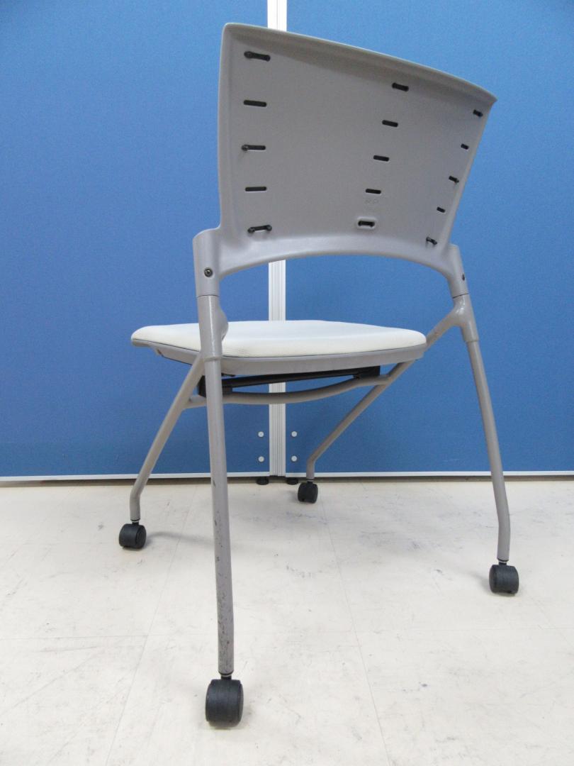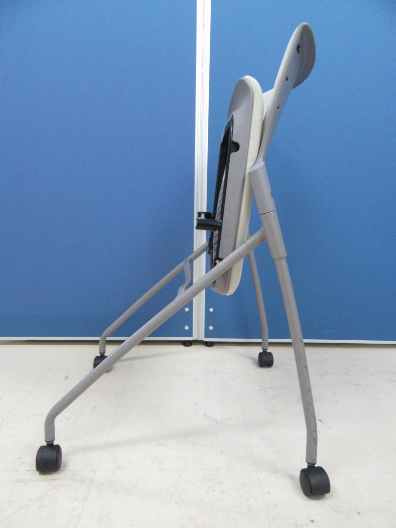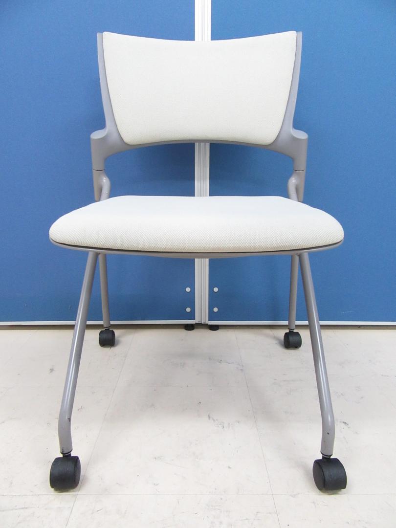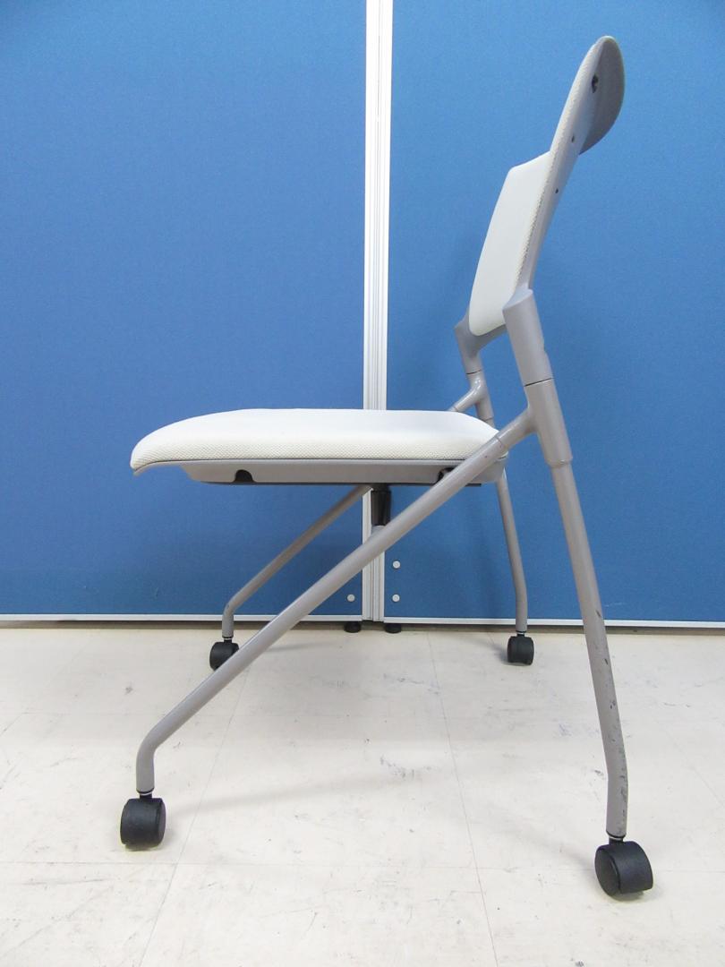 [専門会社クリーニング実施済]イトーキ(ITOKI)マノスチェア ミルキーホワイト■畳んで収納可能で会議後の後片付けがラクです!!※座面に日焼け有[おつとめ品][ネスタブル]- 足立・葛飾店