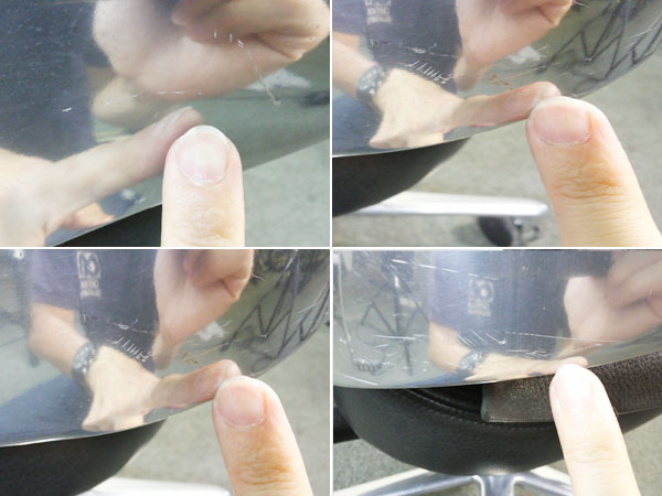 - 目立つ箇所あり傷・破れ・ほつれ・へたり・しわが多数または深い傷・破れ・ほつれ・へたり・しわが一部ある。※座面・背もたれ、シェル、脚部等にある。