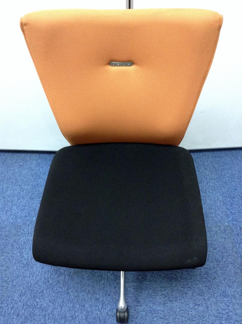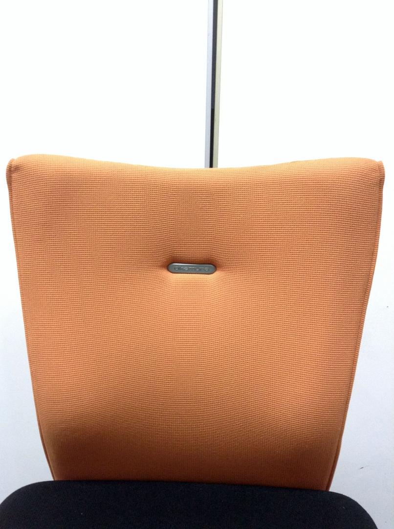【背あてのしなやかな曲線が背中にフィット!快適な座り心地に高級感のあるデザインが人気!】■オカムラ(okamura)製 フィーゴ(feego)チェア ミドルバック ■シームレスタイプ クッション背面 ■コートハンガー付き ■ブラック×オレンジ