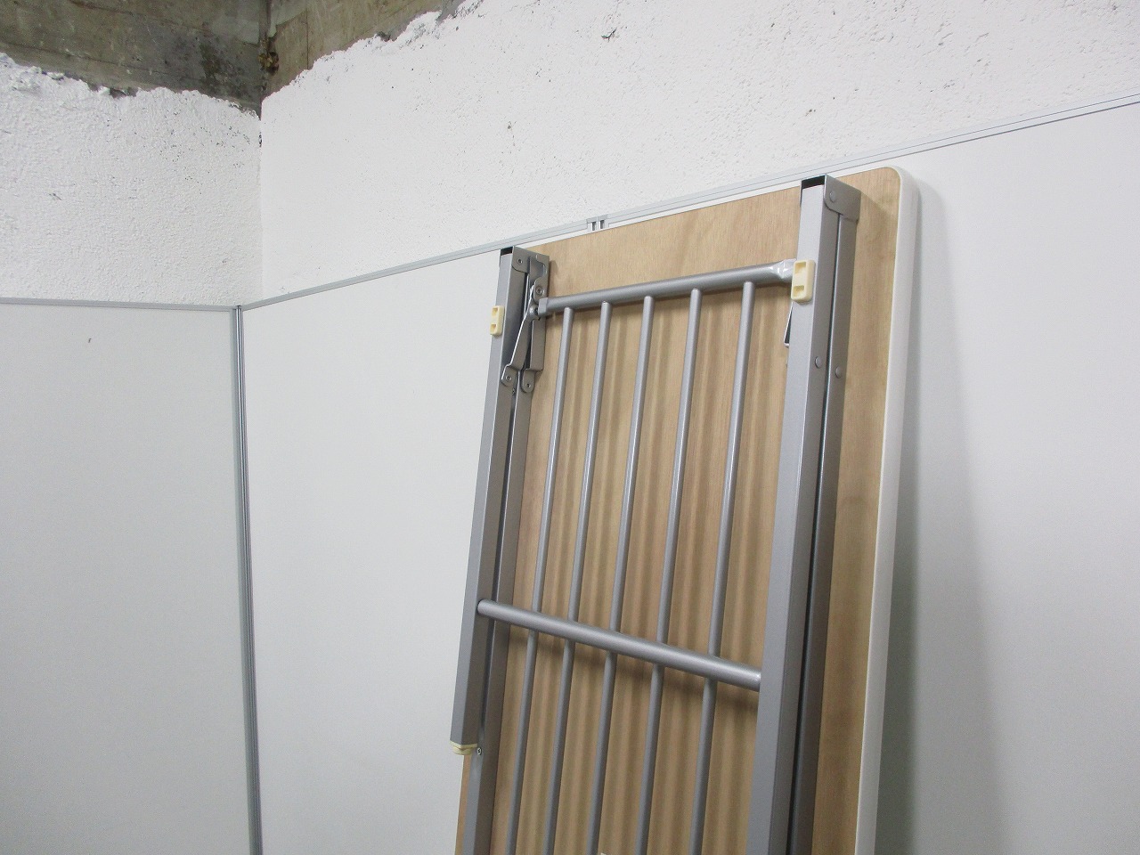 - 一部不具合あり天板歪み、アジャスター無し、キャスター使用不可ようなそのテーブルの本来の効用を果たすための機能以外の一部が使用不可な状態。(例、キャスターロッ ク機能使用不可、棚板無し等がある。)
