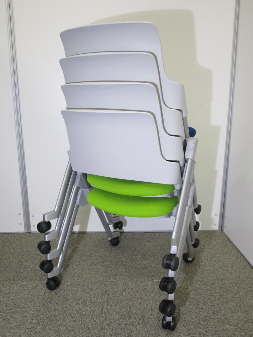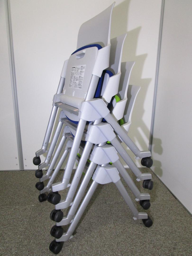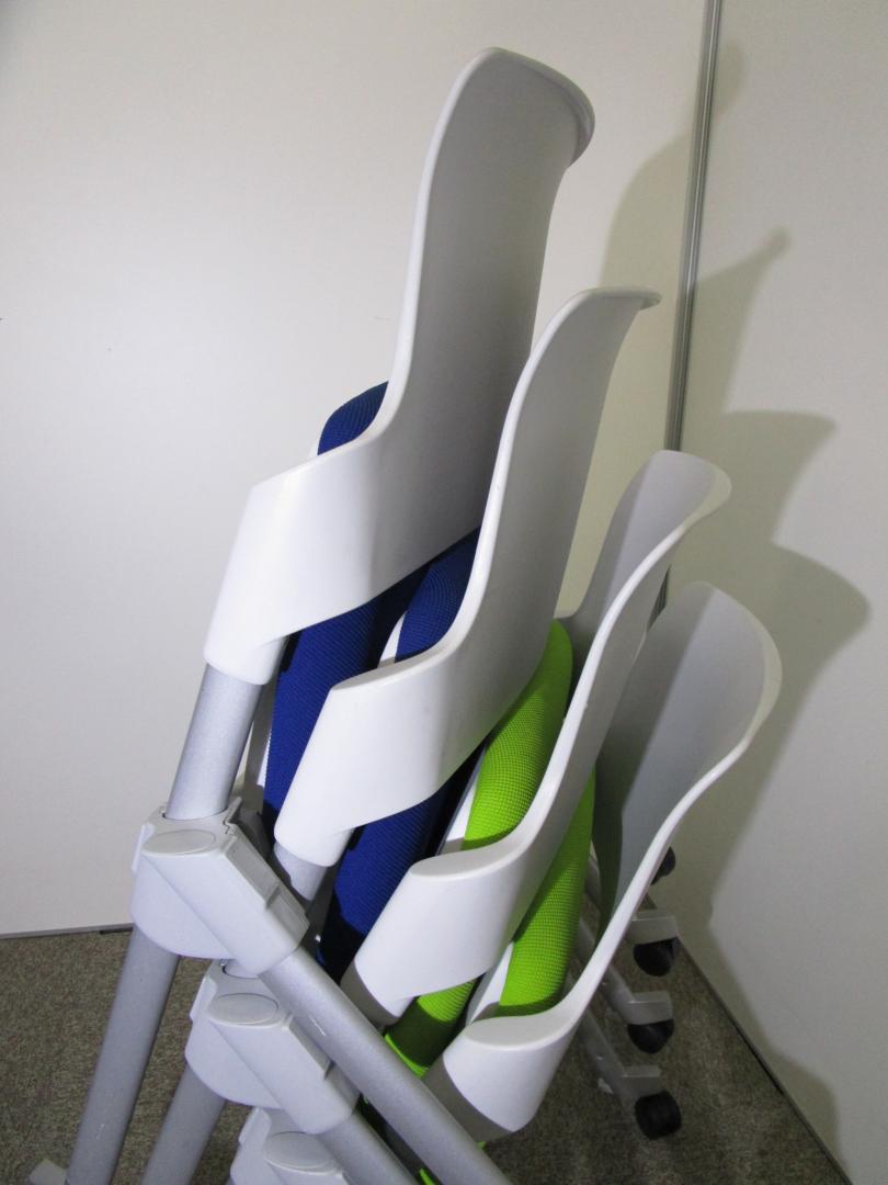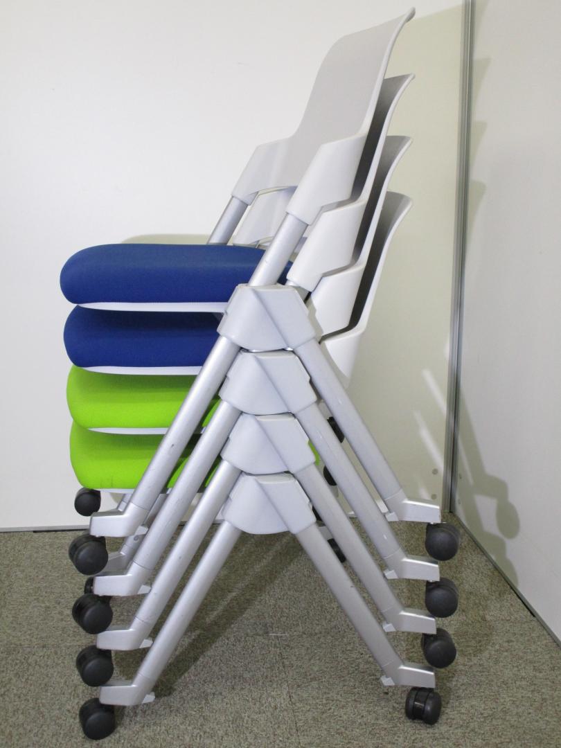 【セット商品】ブルー×グリーン■コクヨ製アンフィ■4脚セット!2通りのスタック方法を兼ね備えた効率性に優れたミーティングチェア!- 池袋店