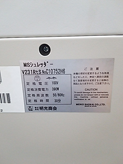 【中古】 MS-V231RtS 明光商会 シュレッダー 172861