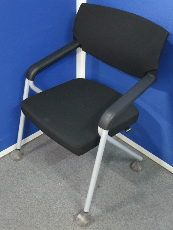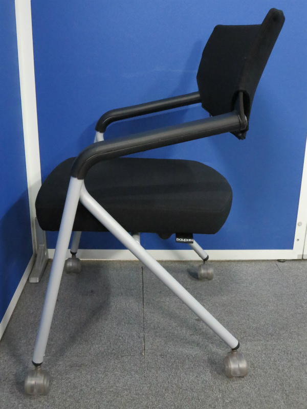【座面が広めでリラックスできます!】■人気のネスティングチェア【肘付・ブラック】■【ドイツ家具メーカー・Dauphin(ドーファン)製】【水平スタッキング】- 川崎店