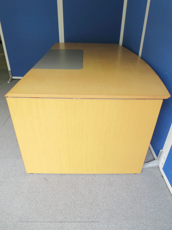 天板の奥側が湾曲しており、イスをセットして対面で打合せができる仕様となっております。