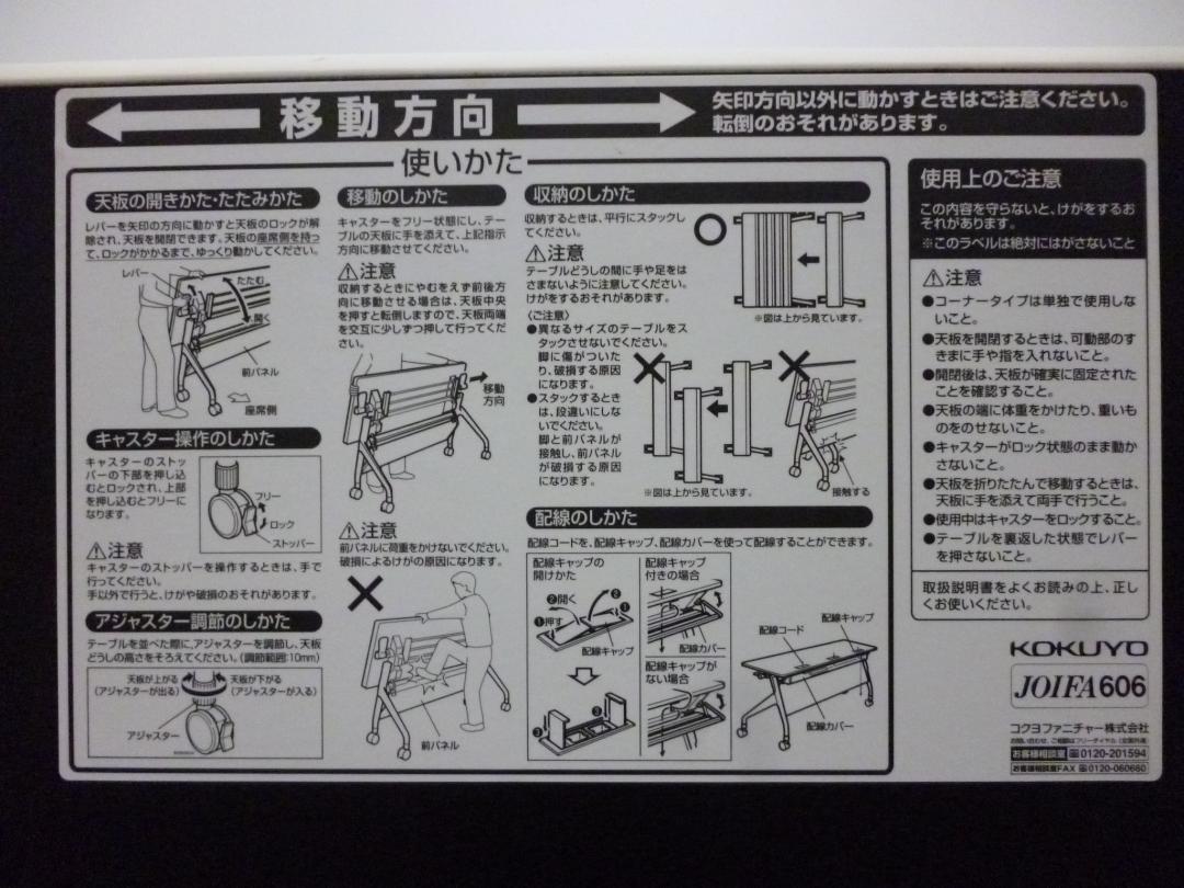 - 一部不具合あり天板歪み、アジャスター無し、キャスター使用不可ようなそのテーブルの本来の効用を果たすための機能以外の一部が使用不可な状態。(例、キャスターロッ ク機能使用不可、棚板無し等がある。)